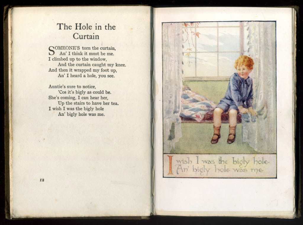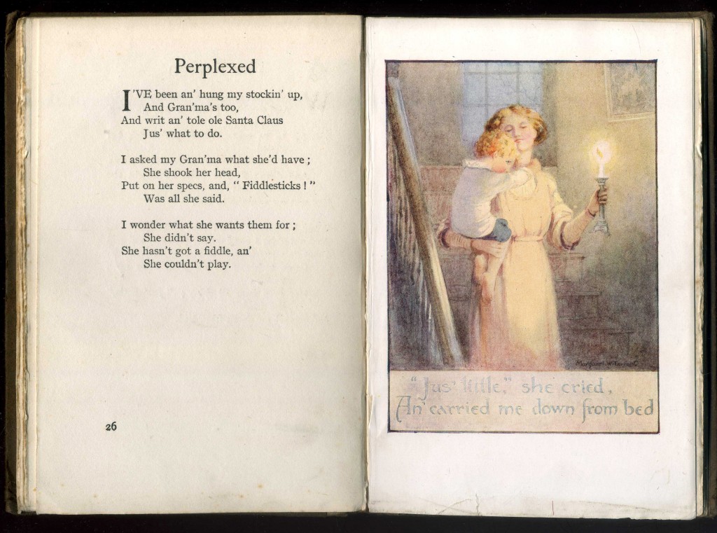 Illustrated with four colour plates by Margaret Tarrant, this is a collection of poetry for children presaging A A Milne's verse in style and content.