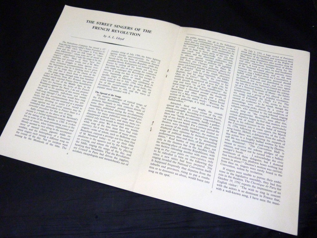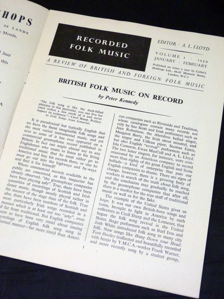 The first issue of the second year of Recorded Folk Music, a slim magazine to review British and Folk music recordings. This issue has an article by Peter Kennedy on British Folk Music on Records, and A L Lloyd's Street Singers of the French Revolution.