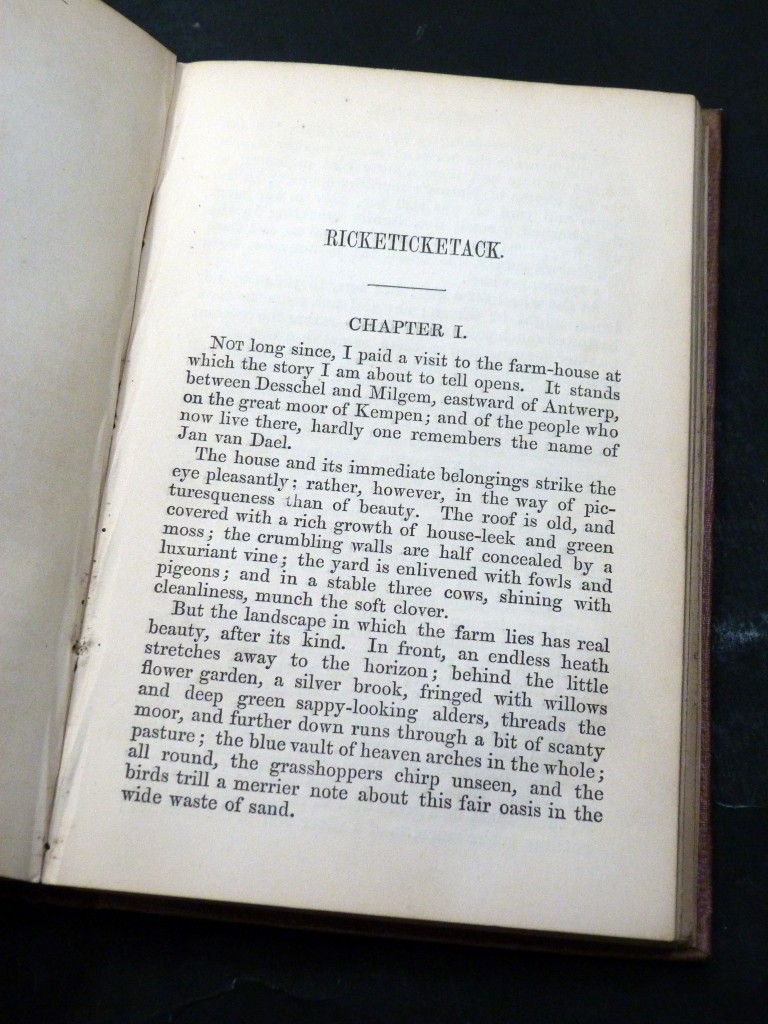.Two works in one volume from this important Belgian author. The Miser was first published as De Gierigaerd in 1852, and Ricketicketack (first published as Rikke-tikke-tak as a serial 1845; and as a book, 1851).