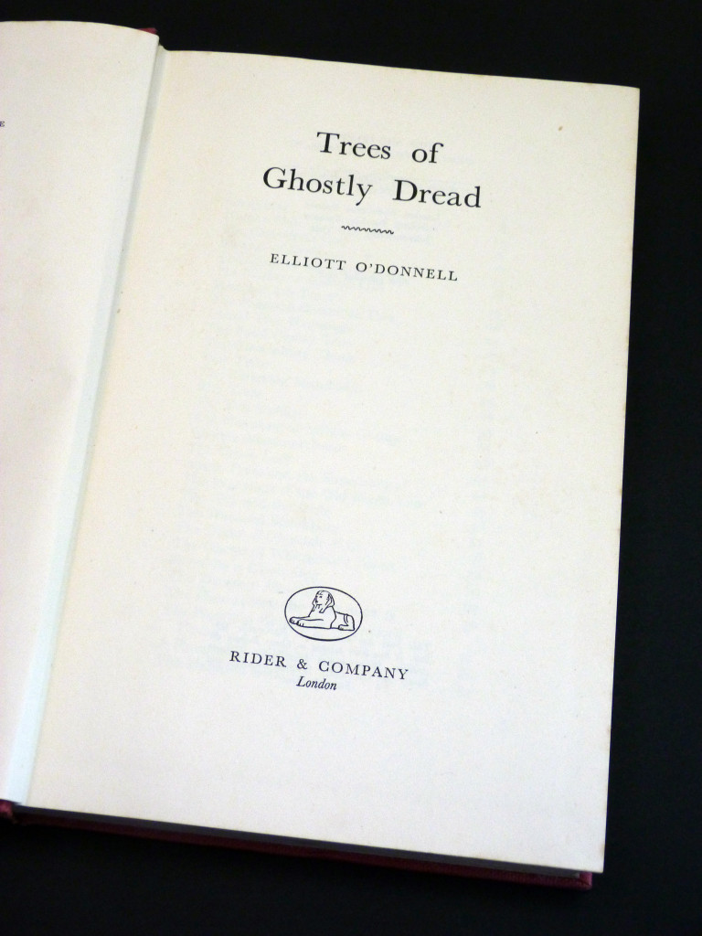 A rare first edition. One of the most prolific authors and investigators on the subject of ghosts of the early 20th century, Elliott O'Donnell investigated numerous hauntings, claiming to have visited thousands of localities and been eyewitness to hundreds of ghosts and various paranormal phenomena. In this volume he tells over 50 tales with particular attention to the subject of trees and forests and of the phantoms that haunt them, and of ghostly legends founded upon historical fact.