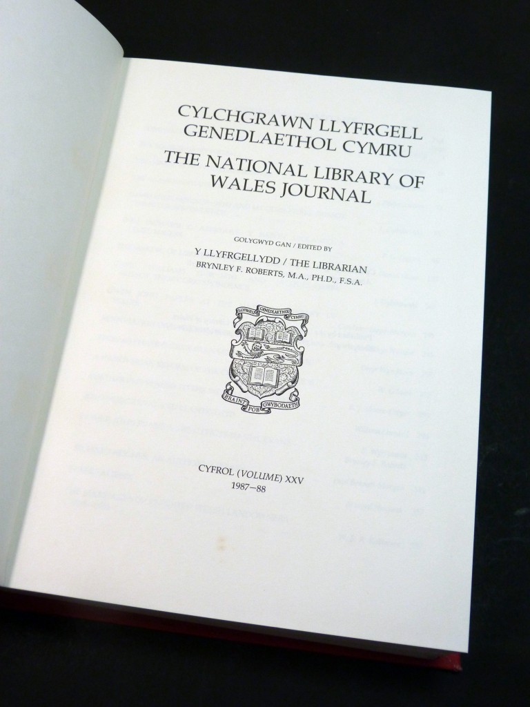 Full title: Cylchgrawn Llyfrgell Genedlaethol Cymru / The National Library of Wales Journal, Volume XXV 1987/1988