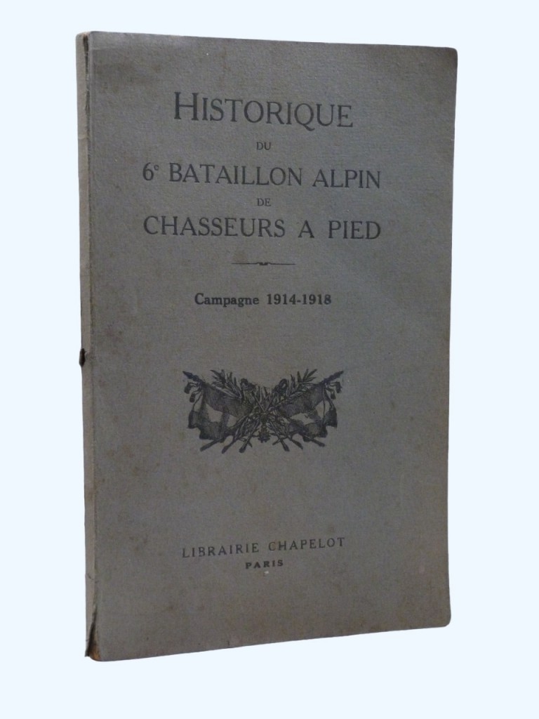 A Great War history of the 6th Bataillon Alpin de Chasseurs a Pied, a battalion of French mountain troops and their service in the Great War where they fought on the Western Front and aided in the evacuation of Serbian troops from Corfu. The book also contains a fifteen page Roll of Honour naming the men killed or died of wounds (tues ou morts des suites de leurs blessures) during the Great War.