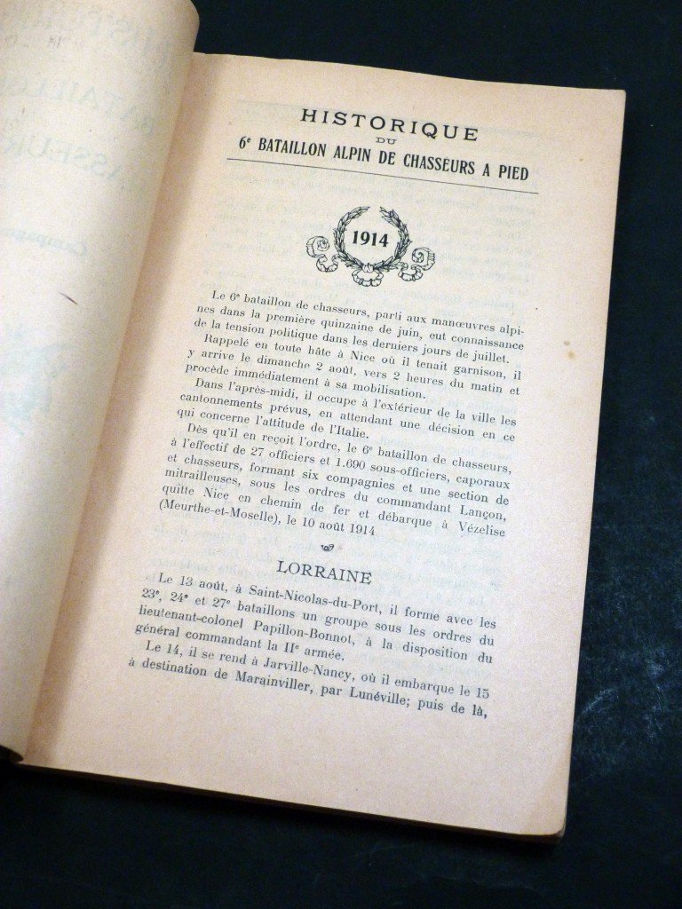 Historique du 6e Bataillon Alpin de Chasseurs a Pied; Campagne 1914–1918