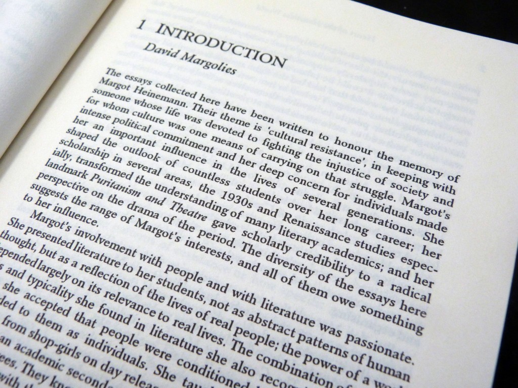 Margot Heinemann, who died in 1992, was a great scholar of the Renaissance period. As a Marxist, she inspired many with her commitment to the idea that cultural activity was central to the continuing struggle against oppression. These writers consider cultural theory in her honour.