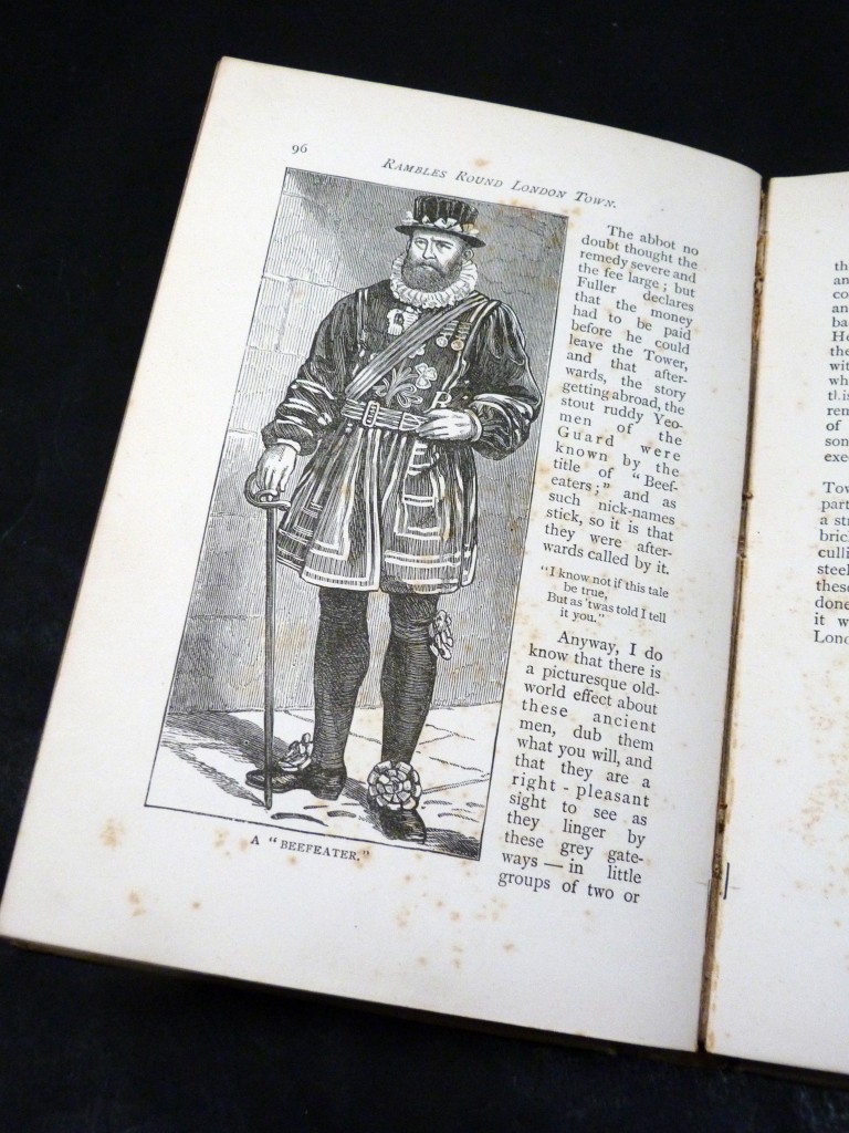 A nice late-Victorian book ramble around London landmarks (more of a history guide than a walking tour), including Westminster Abbey, The Tower, Zoological Gardens, National Gallery, Parliament, The City, Guildhall etc, and illustrated throughout with black and white engravings.