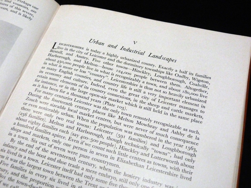 "This book is the fruit of some twenty years' residence in Leicestershire, in a village and in a big city. It is, as the subtitle suggests, an illustrated essay on the history of the landscape, an attempt to interpret to others the significance of what they may see in the streets and fields, the history that lies behind the scene of everyday existence."