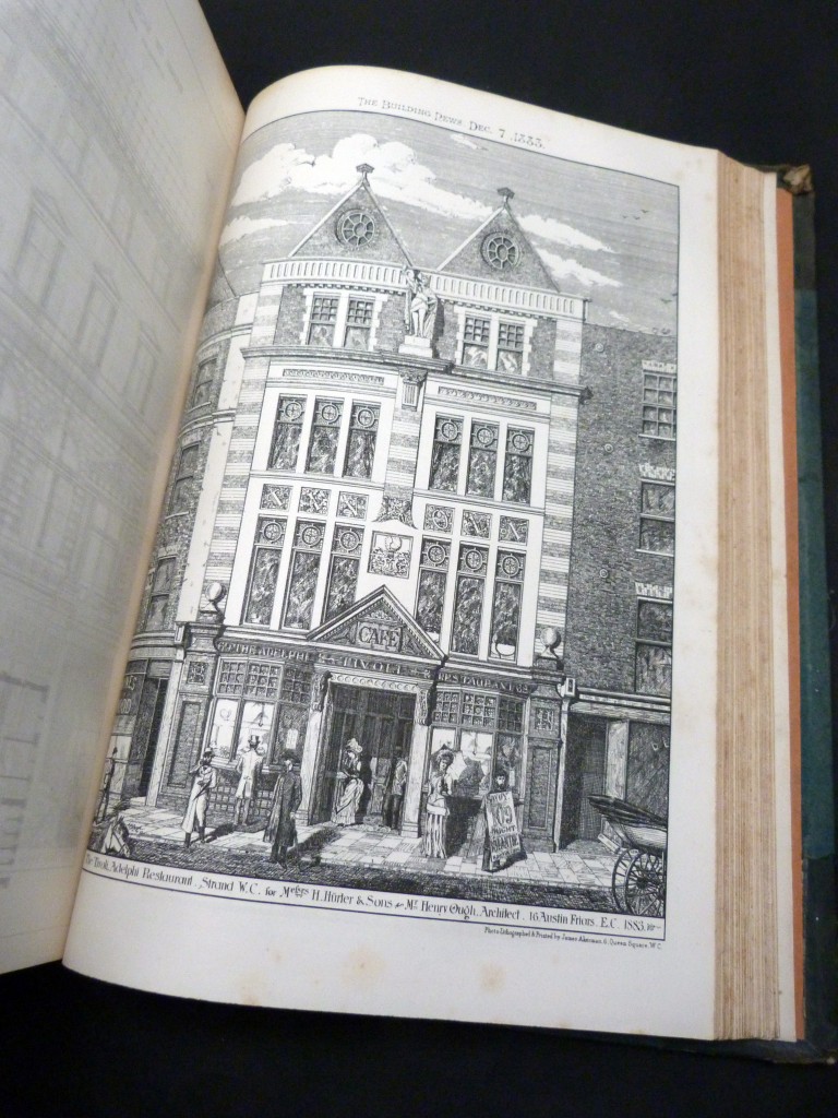The Building News and Engineering Journal was established in 1854 and became one of the principal sources of architecture, building, and restoration of the Victorian age. Illustrated throughout with double page drawings, full single page drawings, architectural plans, and smaller drawings within the text, this journal documented and recorded buildings throughout Great Britain, as well as occasionally overseas. The eight page index at the start gives a good idea of the number of illustrations and topics.