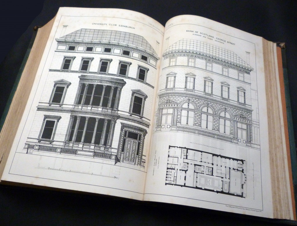 Among the impressive illustrations are: a building on Wigmore Street (double spread), St John's Schools, Chester (single), Artizans Dwellings, Notte St, Plymouth (single), architectural street fronts in Nottingham (new municipal offices) (double), Aberdeen Art Gallery & Museum (single), New Hotel, Bush Hill Park (Enfield), useful furniture by Sheraton, sculptured figure work by Viollet le Duc (both singles), staircase decorations by Jeffrey & Co (double), and this is a fraction of the illustrations.