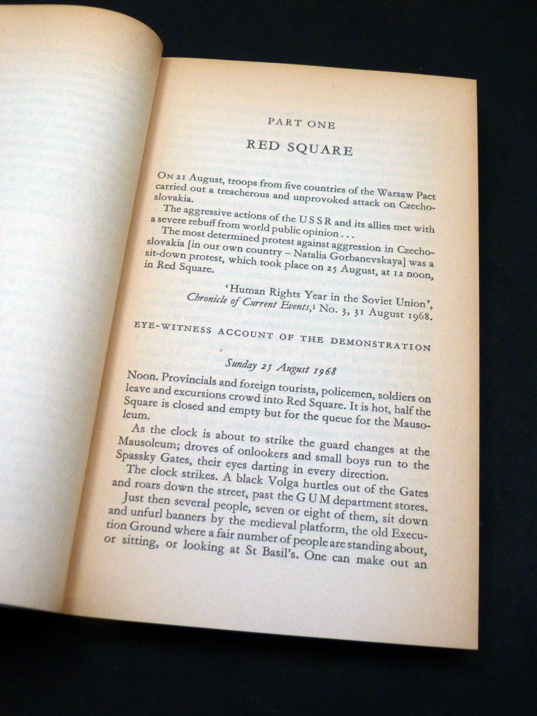 Gorbanevskaya was one of eight protesters in the 25 August 1968 Red Square demonstration against the Soviet invasion of Czechoslovakia. Red Square at Noon is an account of subsequent trial of the demonstrators.