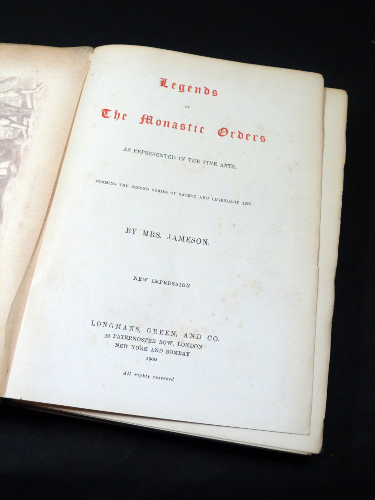 A study of the monastic orders seen through the eyes and works of artists of the time. This volume formed the second title of Jameson's Sacred and Legendary Art books. Illustrated in monotone.