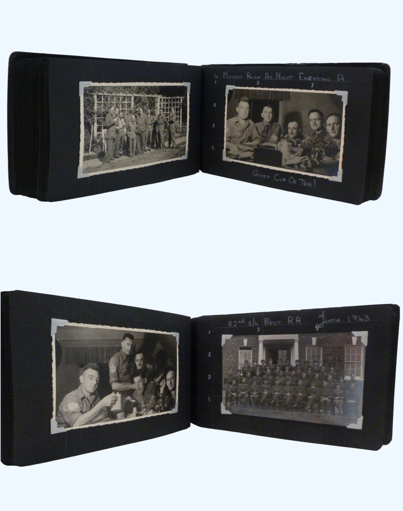 This is followed by 37 black and white photographs featuring Gunner Abrams and Captain Warren, and of members of the 82nd Searchlight Reg, RA, ranging in date from 1940 (a group shot of officers, all with rank and surname), and several shots of the NCOs and men in a fairly relaxed manner and, towards the end of the war, even larking about in events such as the Regimental Sports, Spring 1945, and the Demobilisation Race, with some photographs dedicated to Alan (Alan S Abrams). A rare collection.