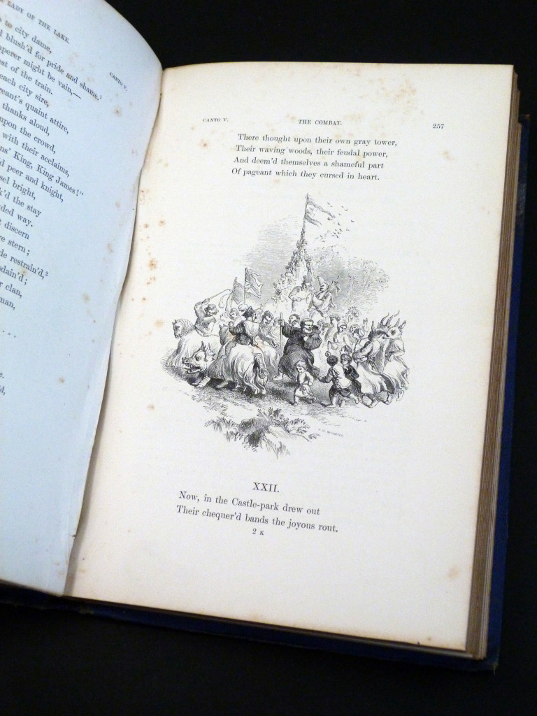 Set in the Trossachs region of Scotland, Scott's poem comprises six cantos, each of which concerns the action of a single day. The poem has three main plots: the contest among three men, Roderick Dhu, James Fitz-James, and Malcolm Graeme, to win the love of Ellen Douglas; the feud and reconciliation of King James V of Scotland and James Douglas; and a war between the lowland Scots and the highland clans. Illustrated throughout by Birket Foster and John Gilbert.