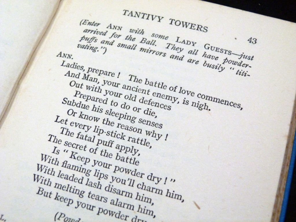 A three act light opera with libretto by A P Herbert (the music was composed by Thomas Dunhill). From the dustwrapper, "Tantivy Towers in concerned with picturesque aspects of present day English life. It ranges from Bohemia to the hunt, and its theme may be described as the ancient conflict between 'Chelsea' and the 'Country', the artist and the man of action, or as one of the songs puts it, between Orpheus and Hercules". It was a great success, running for six months, touring America and Australia, and being revived in the mid 1930s.