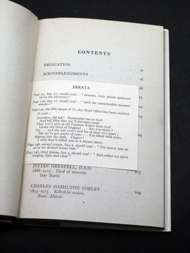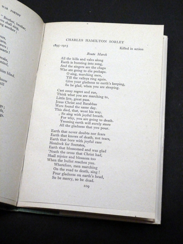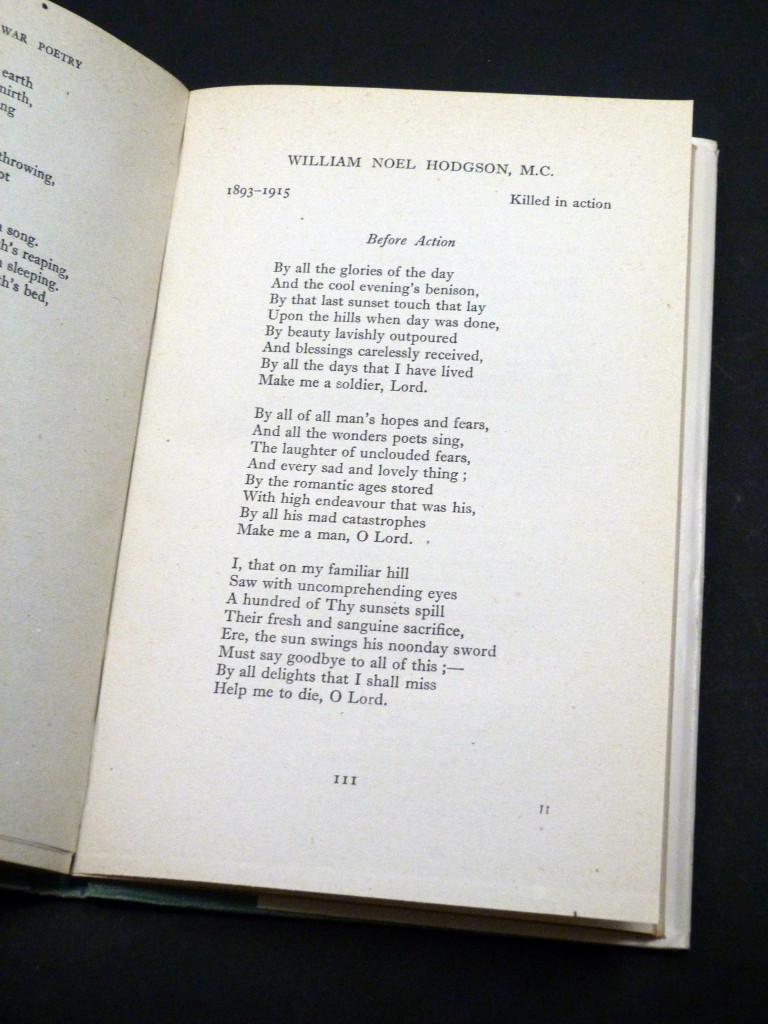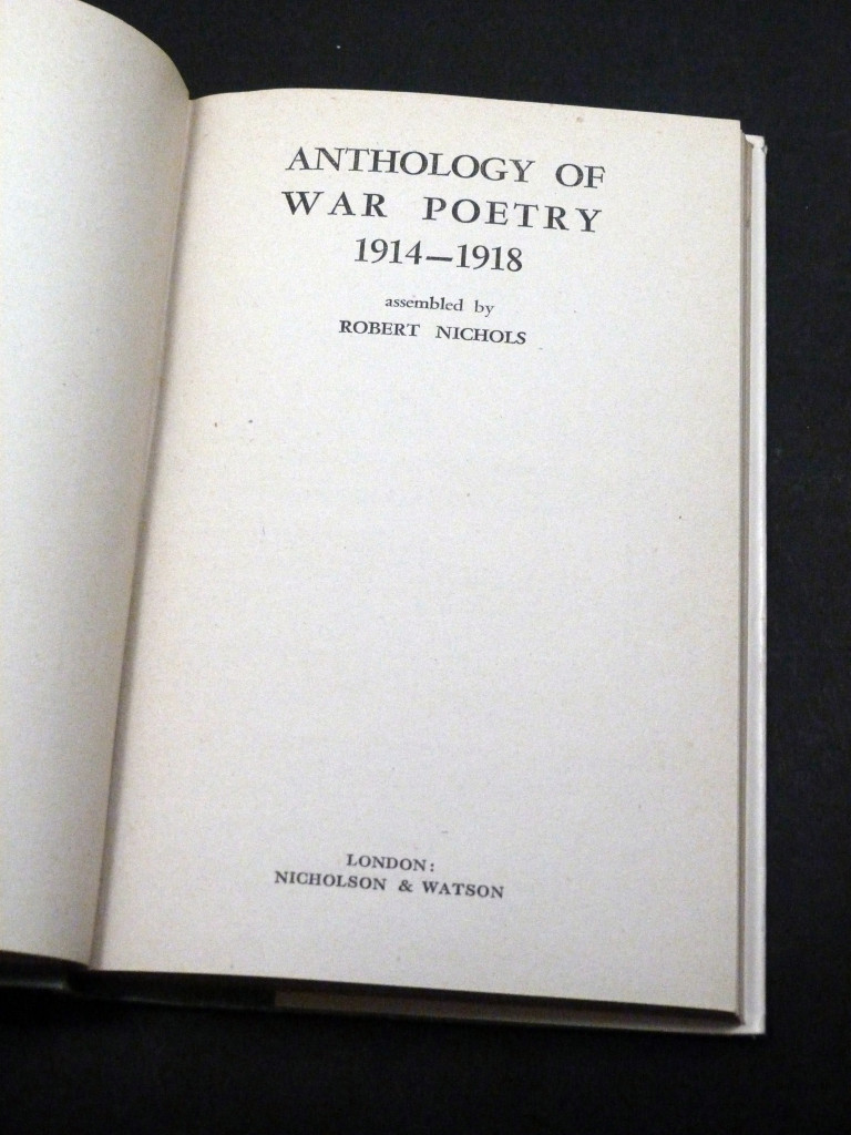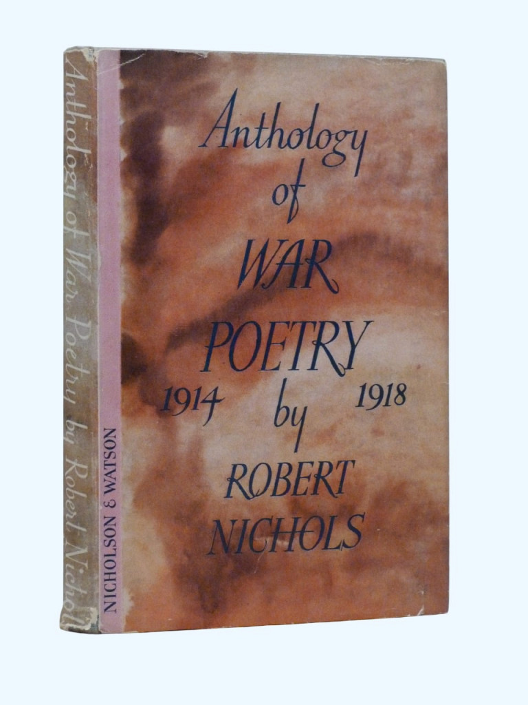 A good collection of Great War poetry by poets who saw active service between August 4th, 1914 and November 18th, 1918, and published in the middle of the Second World War or as Nichols puts it "The interest in this anthology lies not only in the high merit of the individual poems, but in the comparison, which will, naturally, be made between the impetus given to young poets and their work in the Great War, and the rise in this Greater War of the poets of the present generation." The book has a lengthy preface dialogue between the anthologist and a young English writer Julian Tennyson, who was to be killed in action in 1945. Included are Julian Grenfell, Charles Hamilton Sorley, William Noel Hodgson, Robert Graves, Edmund Blunden, Siegfried Sassoon, Wilfred Owen etc.