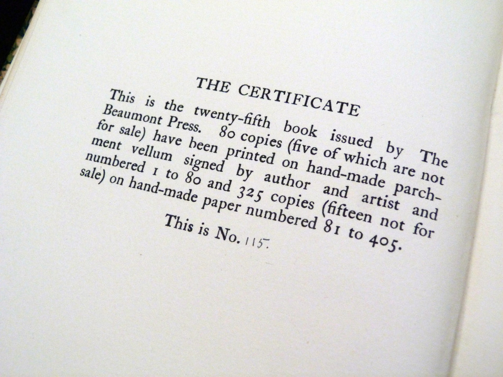 1930, a limited edition of Edmund Blunden's poem published by The Beaumont Press