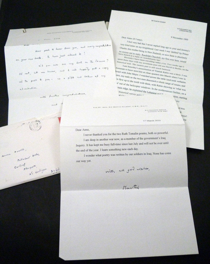 Loosely enclosed are five letters from Martin Gilbert to historian Anne Powell