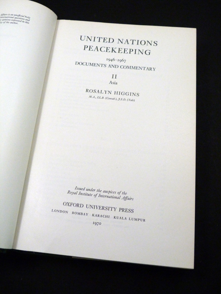 Vol 1: The Middle East (1969), Vol 2. Asia (1970), with a signed card from the author, Rosalyn Higgins