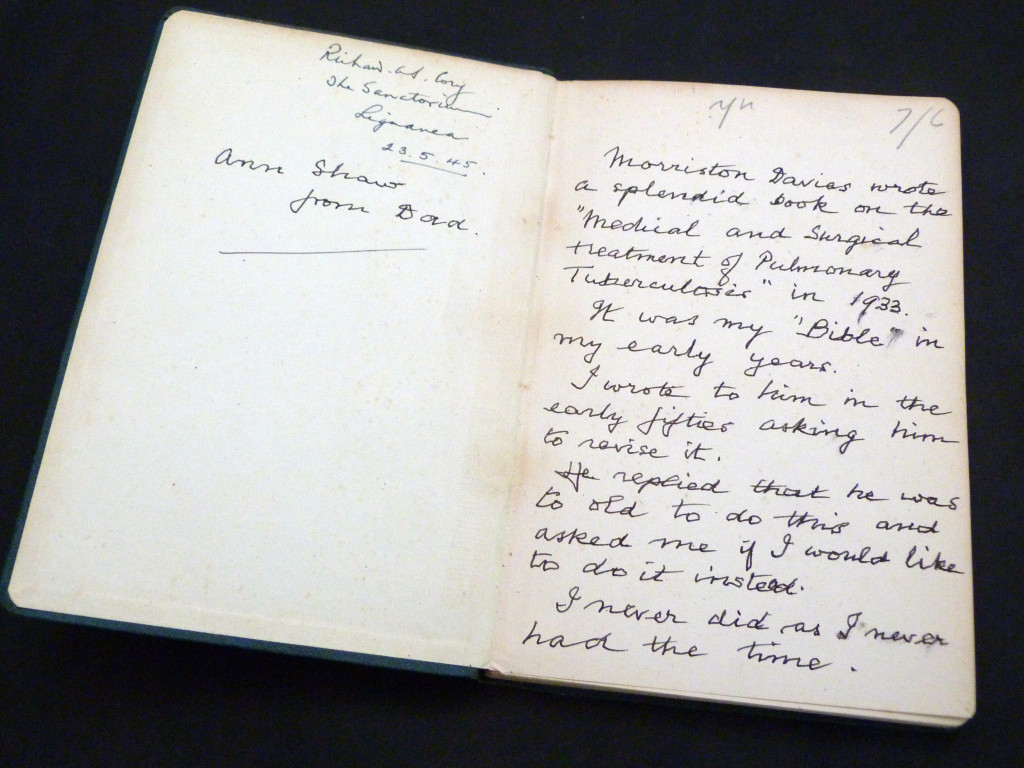 Not signed as such but with an interesting previous owner's inscription. Signed from The Sanatorium, Liguanea (This became the National Chest Hospital in Kingston, Jamaica) by, one presumes, a doctor, with a later note stating Morriston Davies's works were his 'bible' and that he was asking the author for an updated editions (refused as the author was, by then, too old).