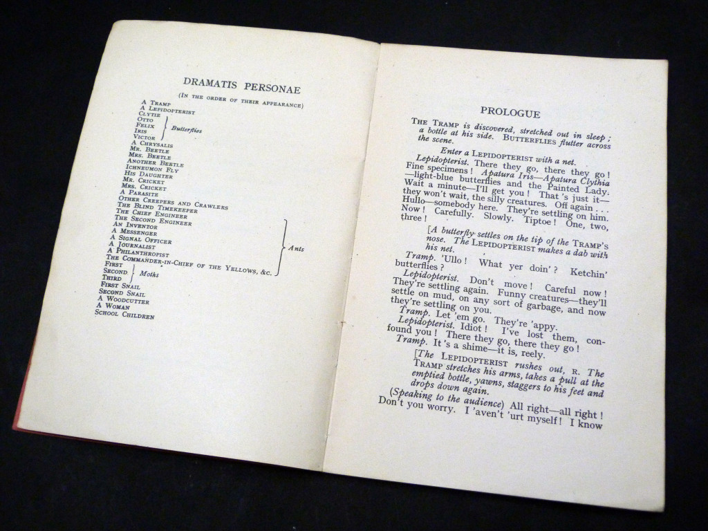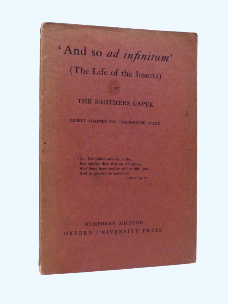 A remarkable play from the Brothers Capek in which they explore various aspects, characteristics and follies of human life through a series of scenes focusing on different insects. The first act features butterflies, flighty creatures falling in and out of love etc, the second is the insect family, each with their own dream, and the third is set in an ant colony wanting to conquer all other nests and colonies in its vicinity.