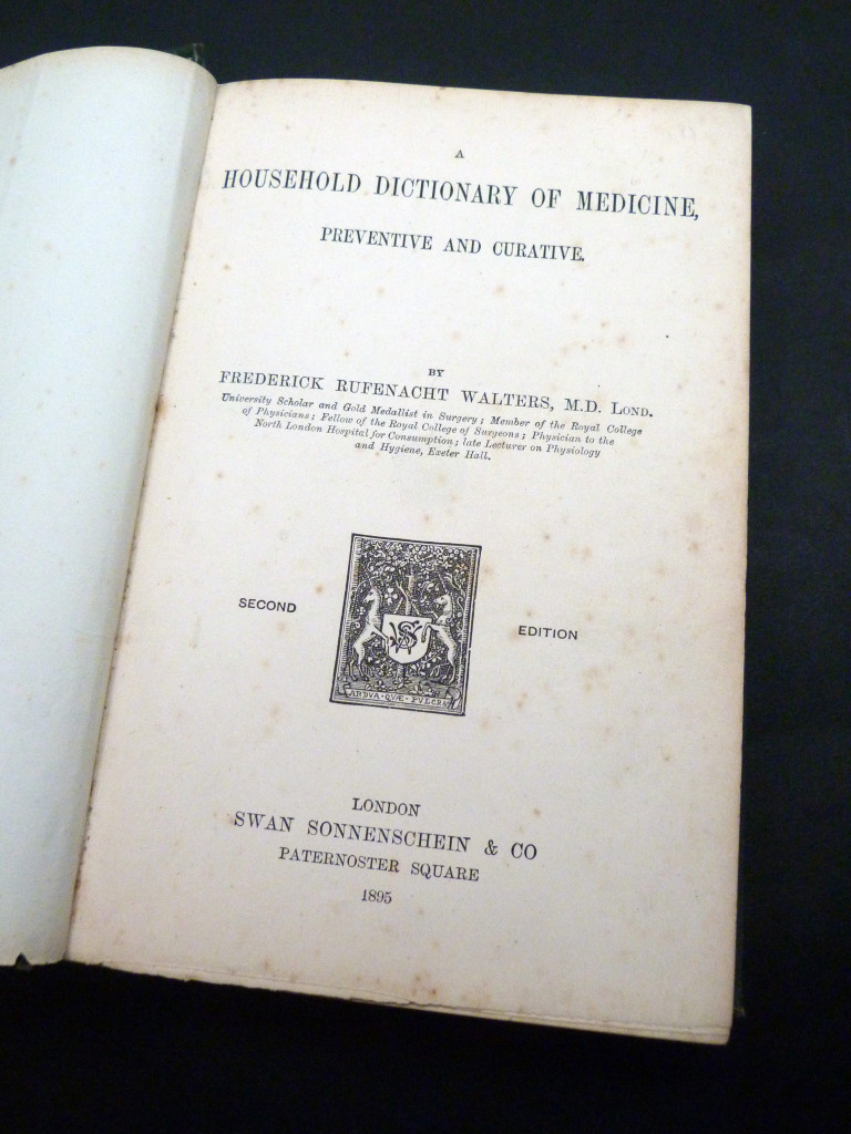 1895, second edition, an alphabetical dictionary of the body, ailments and treatments etc