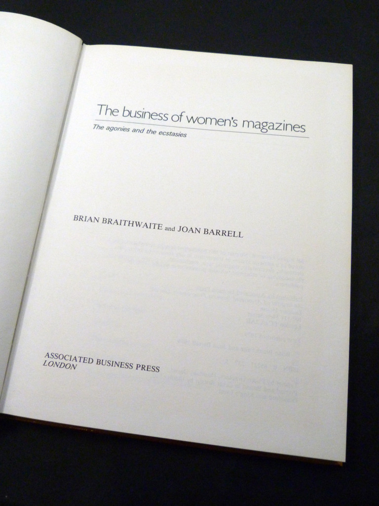 Of the authors, Joan Barrell spent a life in women's magazines, she launched Honey and Fashion, and worked on the launch of Cosmopolitan. Brian Braithwaite also had a life in publishing magazines, and was a director of Queen magazine and launched the newly merged Harpers & Queen and Cosmopolitan in the UK.