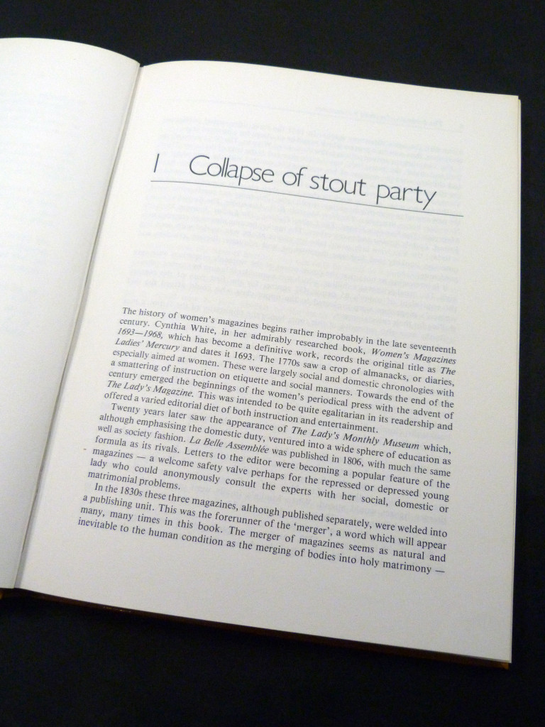 A fascinating study of the publishing industry in relation to women's magazines. The books starts with a brief history from the 17th, 18th, 19th and early 20th centuries, with the longer look at the 1950s, 60s and 70s, this is followed by an examination of the actual business of selling and publishing the modern magazines.