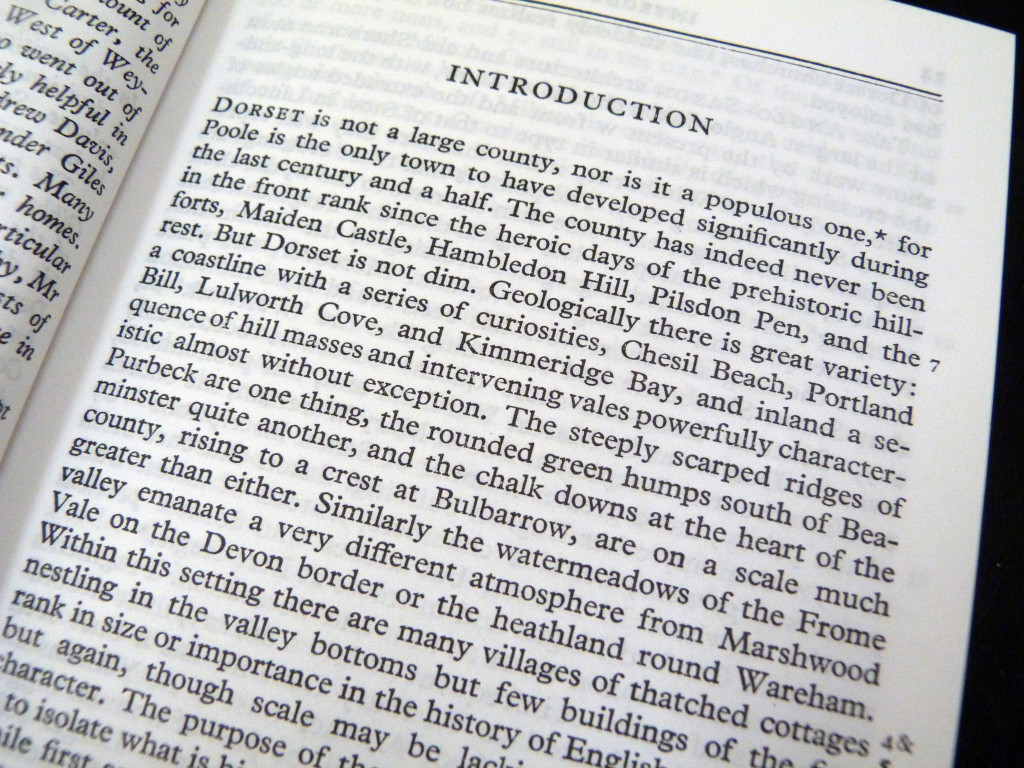 "Everybody tells you Dorset is a house or mansion county, not a church county... Yet when one sets down all one has seen of Dorset churches... one suddenly realises how much one has enjoyed", wrote Pevsner at the conclusion of his journey. The county provides many unexpected pleasures in ecclesiastical buildings, from the Norman arches of Wimborne Minster, the Early English solemnity of Milton Abbey, to the splendour of Sherborne and the monuments and furnishings of numerous smaller buildings. Of castles, mansions and houses, Dorset boasts the evocative ruins of Corfe; the splendid Kingston Lacy; mighty Milton Abbey House and a wealth of more modest homes. But the county also possesses fine towns and villages, from the Georgian elegance of Weymouth and Lyme Regis, to the model estate village of Milton Abbas.