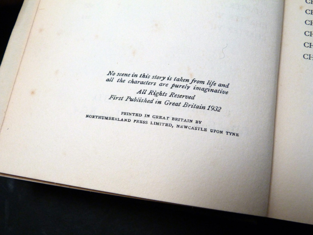 First UK edition. Hardback, bound in black cloth with green titling to spine and upper board. 19 × 12.5cm, 217pp + ads