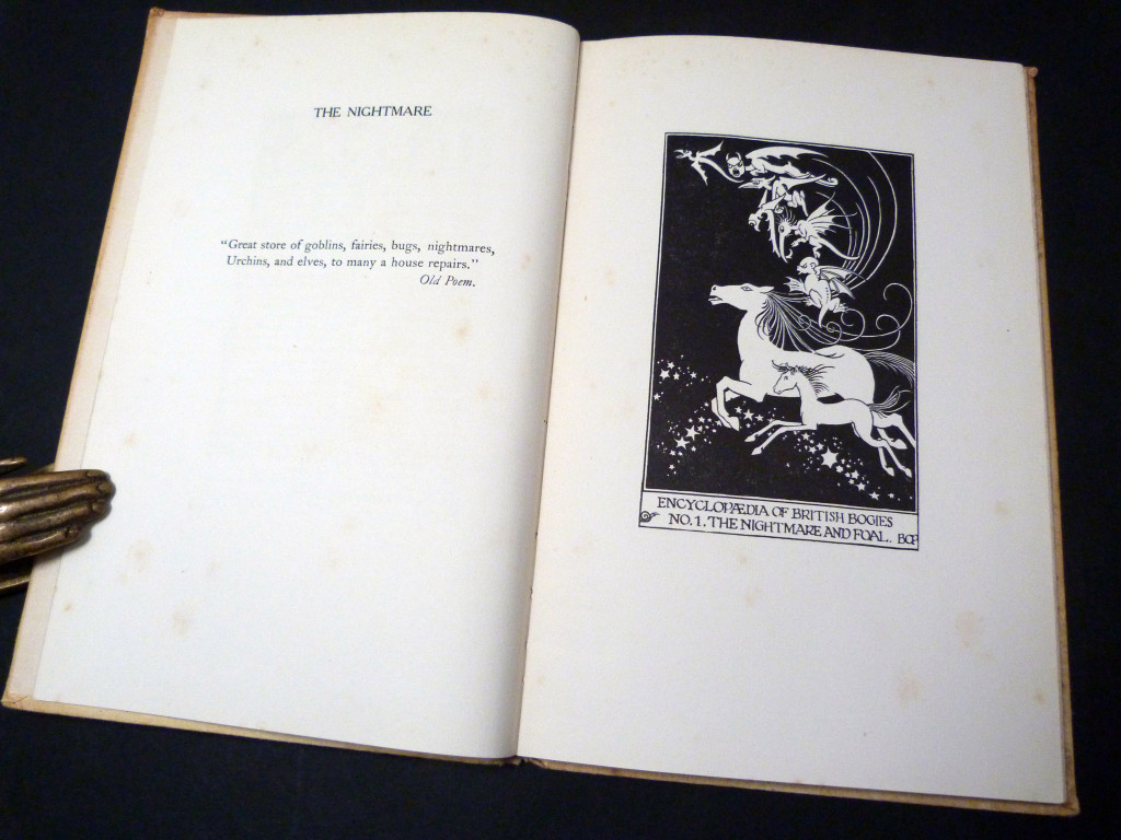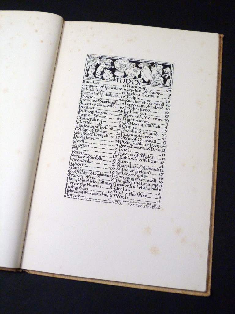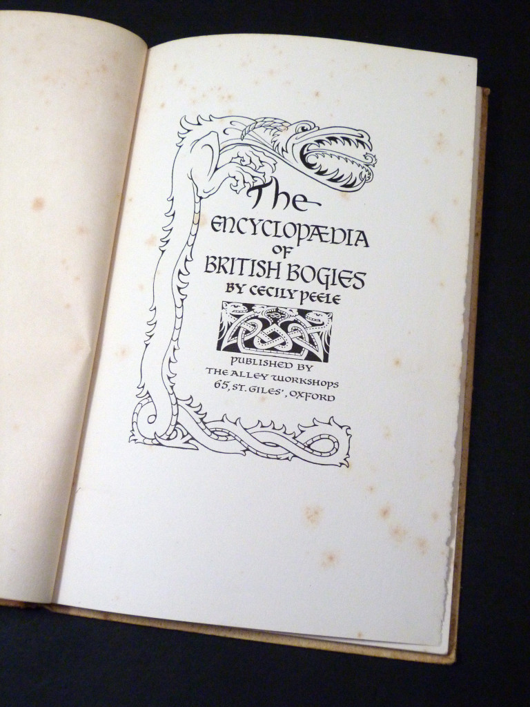 A fairly rare illustrated collection of characters, spirits, sprites and other creatures from British folklore, each with a superb black and white pen and ink illustration by Cecily Peele, and accompanied by some relevant poetry (Shakespeare, Herrick, Chaucer etc). Included are the banshee, Bwg of Wales, Lubberkin, dragon, elf, Will o'the Wisp, Phooka of Ireland, Hairy One of the Isle of Man, and many more.