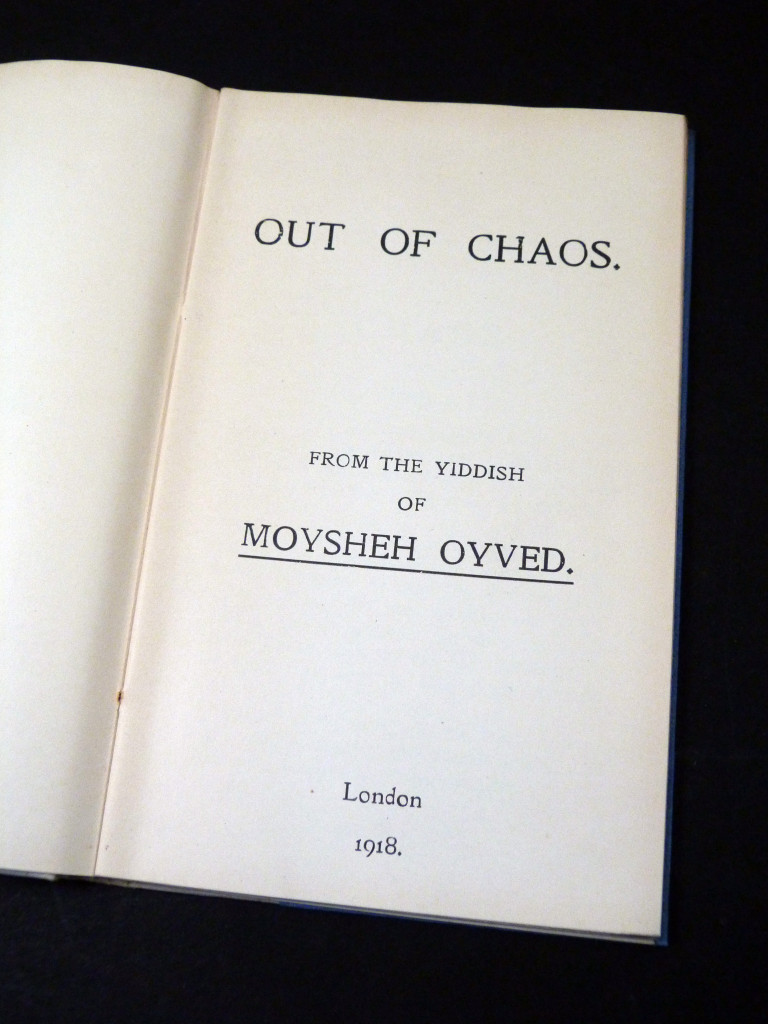 1918, the first UK edition of Moysheh Oyved's first book (Aroys fun Khaos)