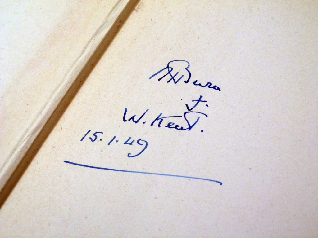 Signed twice by the author. Firstly to the title page, and secondly with dedication to the ffep (believed to be to Maurice Bowra, the English classical scholar, literary critic and academic).
