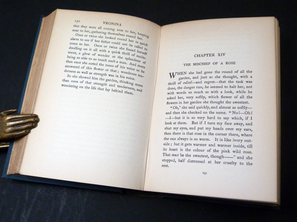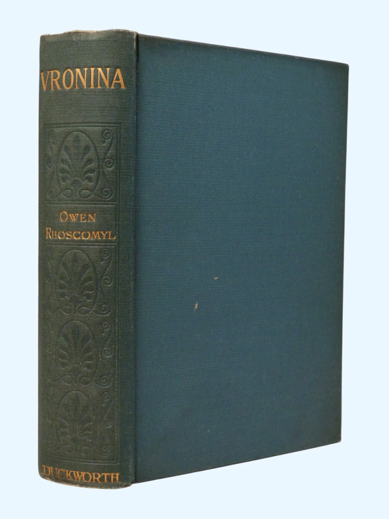 A romance set in the Welsh mountains, titled after the heroine Ina Vronina, who is shown in the frontispiece by English artist A Wallis Mills. The author, Arthur Owen Vaughan was an English-born writer and Welsh Nationalist who wrote under his bardic name of Owen Rhoscomyl. His adventurous life saw him work as a cowboy in America, join up and fight in the Boer War and recruited for the Welsh Horse Yeomanry in the Great War.