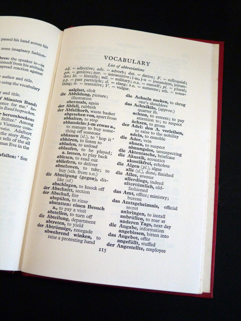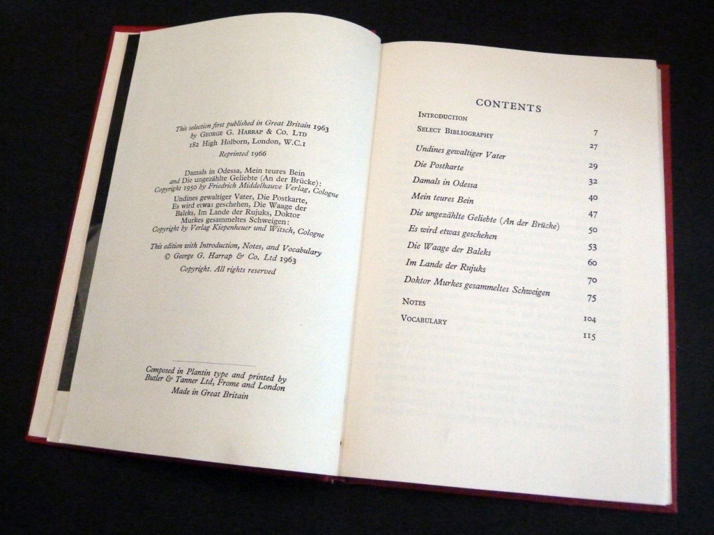 First edition, second printing. Hardback bound in red cloth, titled in black to spine and upper board19 × 12.5cm, 136pp. Introduction and notes in English, story text in German.