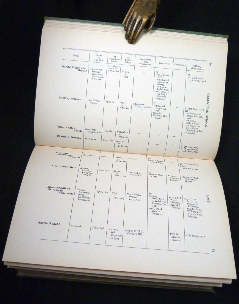 including a roll of pupils including those who served in the Great War