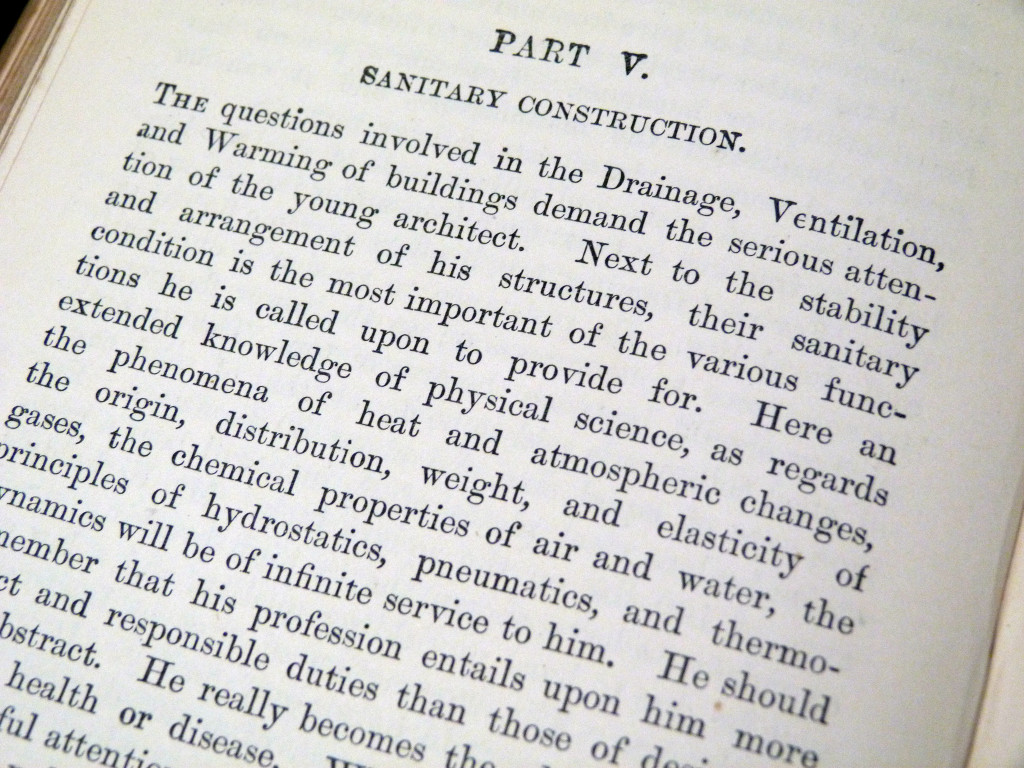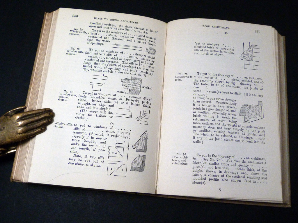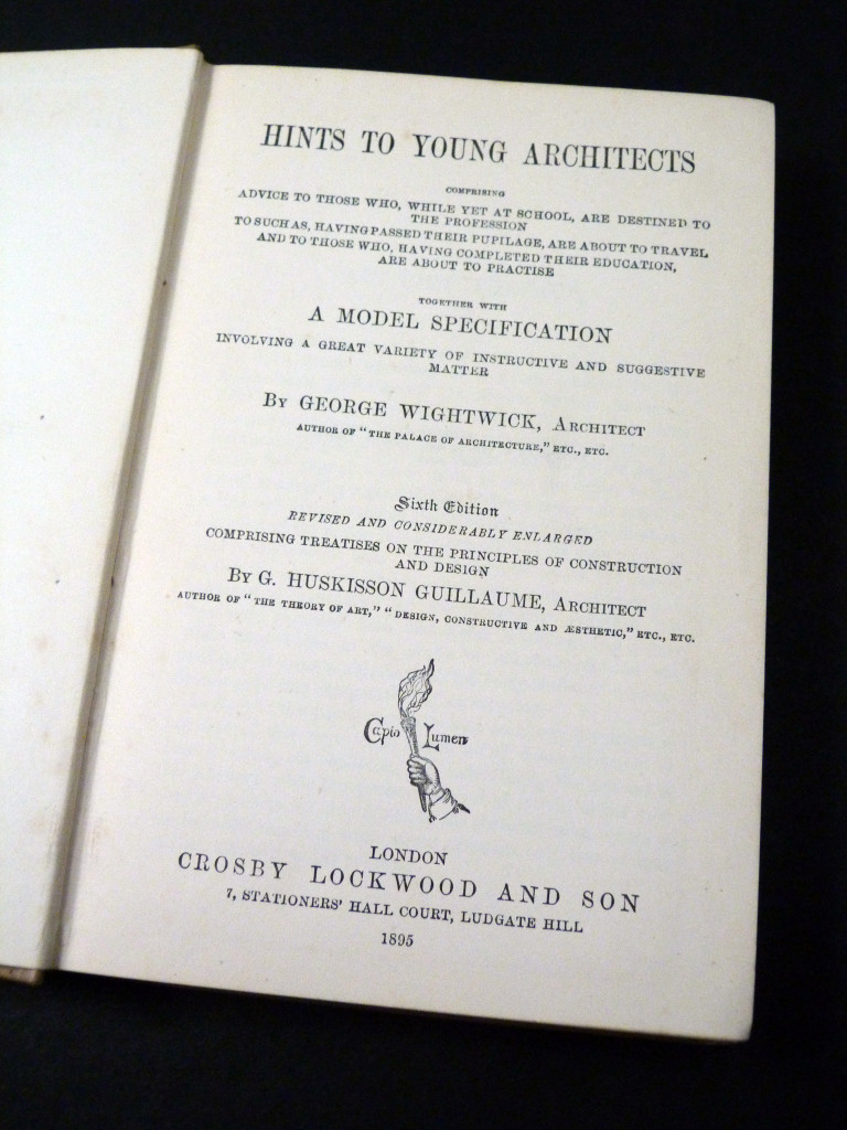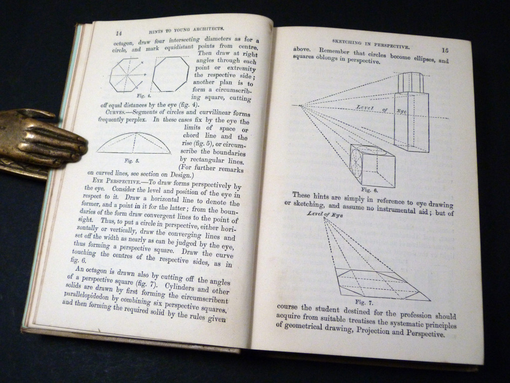 A guide for budding architects with details on windows, stairs, sanitation and plumbing, perspective, drawing, materials etc and illustrated with technical diagrams.