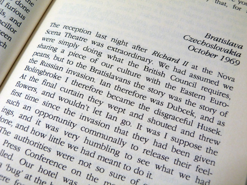 A collection of letters from actor Timothy West to his wife Prunella Scales, spanning thirty-one years whilst he was away on stage or filming, and forming an early autobiography, as well as his view of his fellow actors and the theatre all over the world.