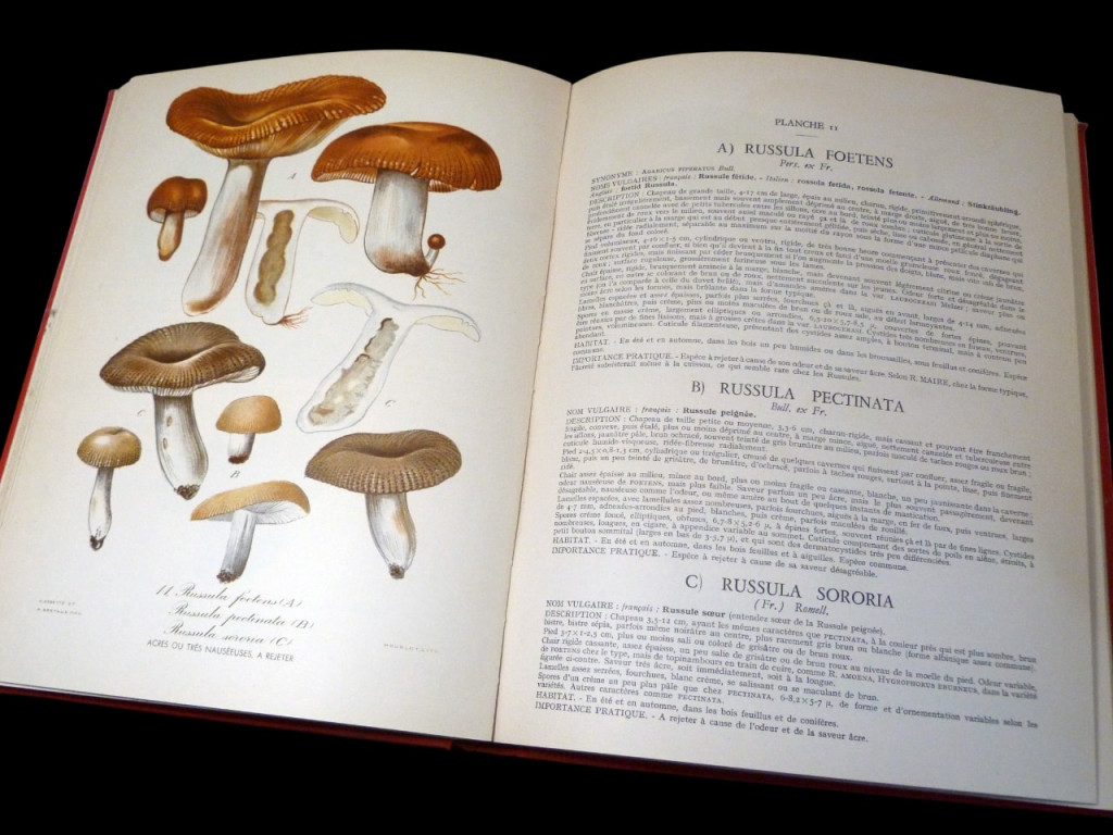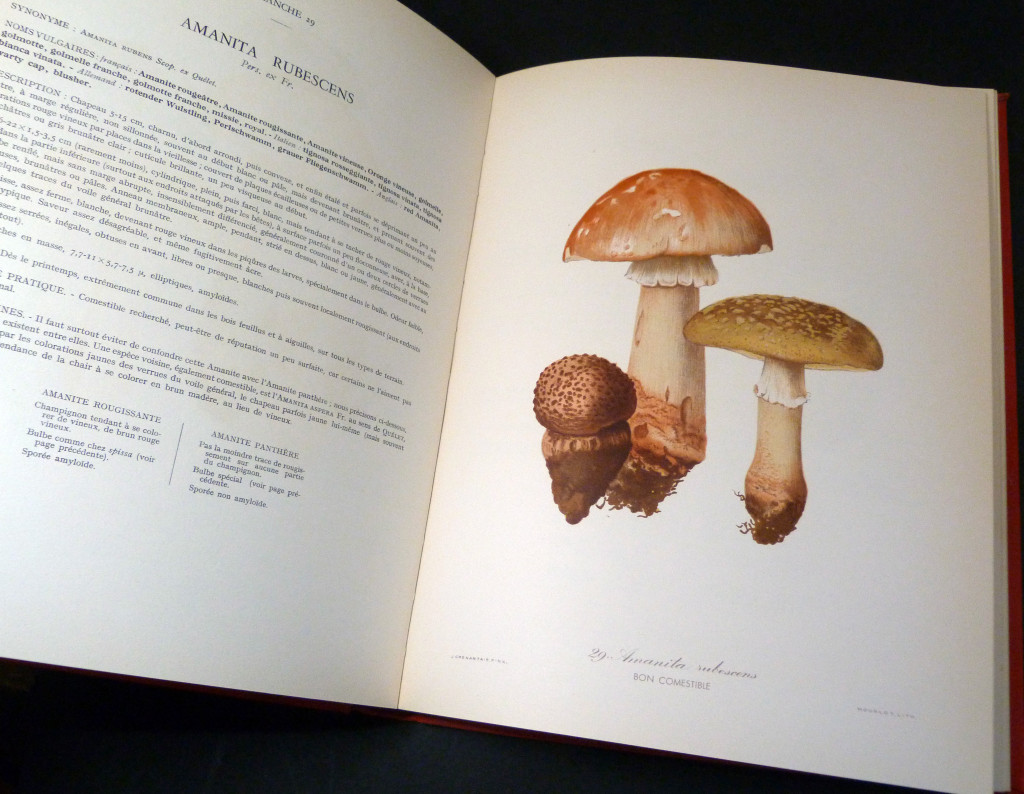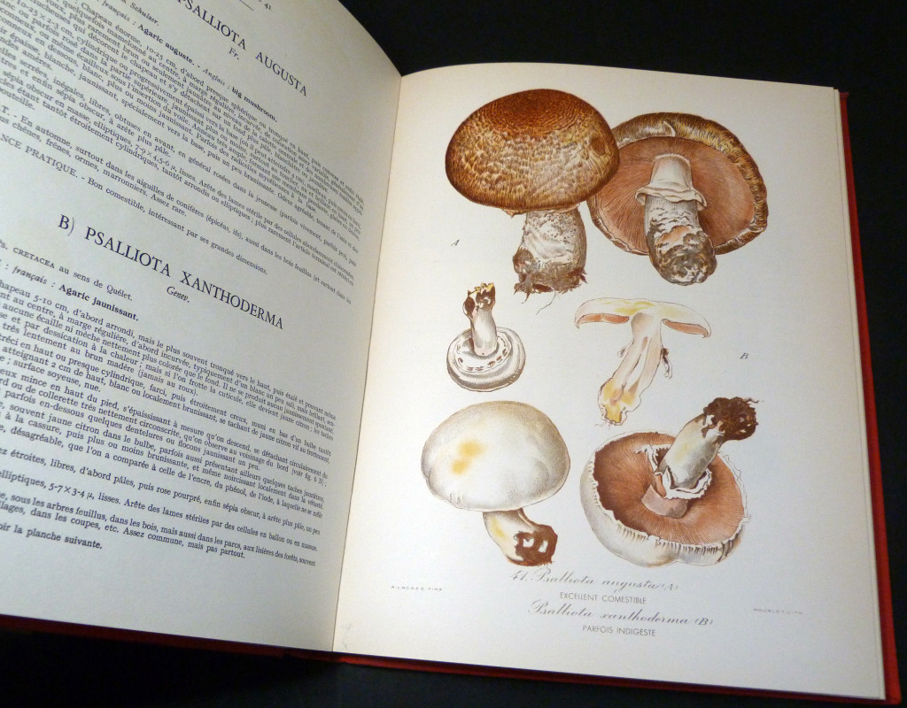 Published under the auspices of the French Mycological Society, this book has a lengthy introduction on mushrooms, followed by 79 full page colour plates, with text opposite describing the names, habitat, uses of the mushrooms pictured