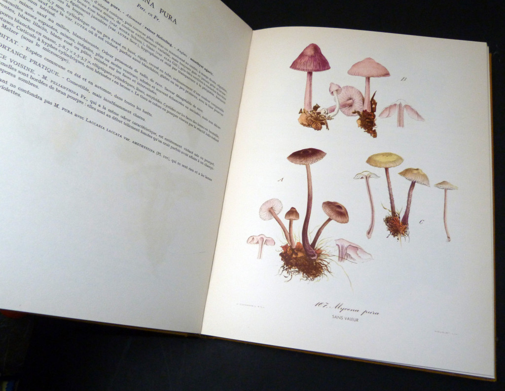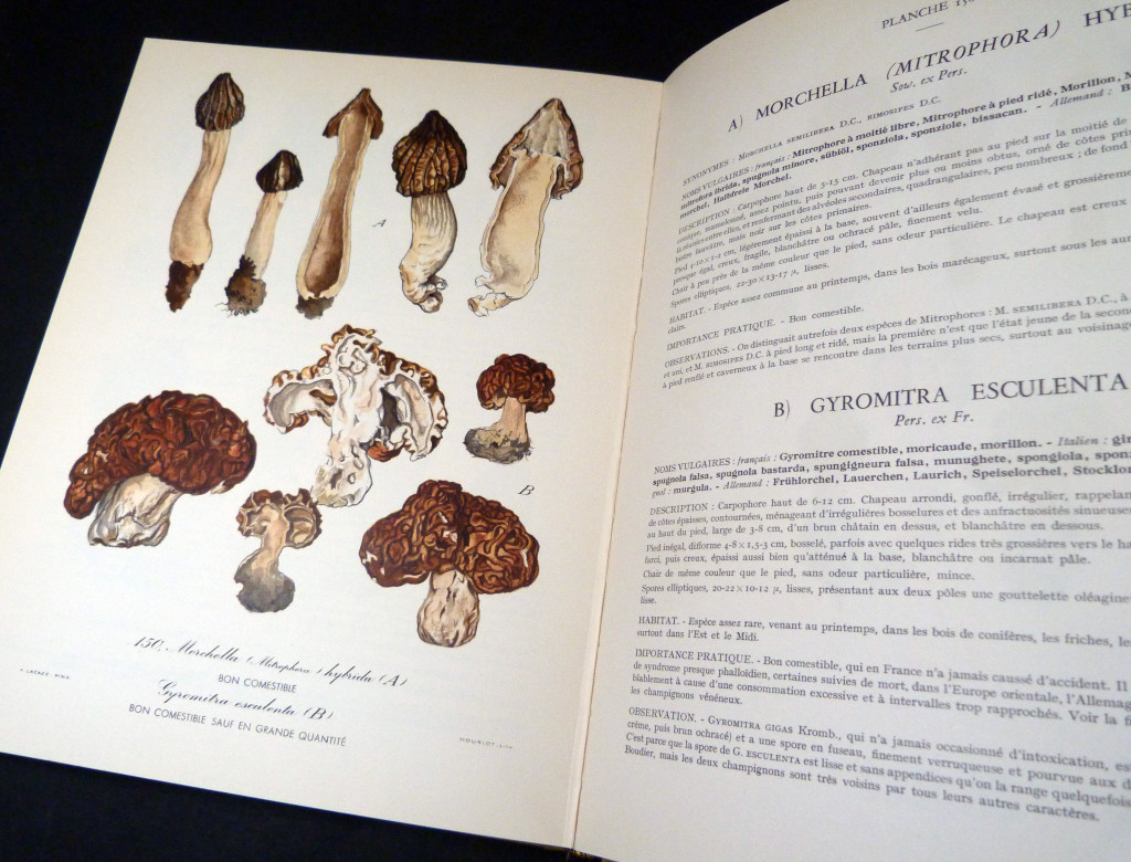 Published under the auspices of the French Mycological Society, this book has 74 full page colour plates, with text opposite describing the names, habitat, uses of the mushrooms pictured, followed by an appendice of 'definition botanique des Genres et Complements'.