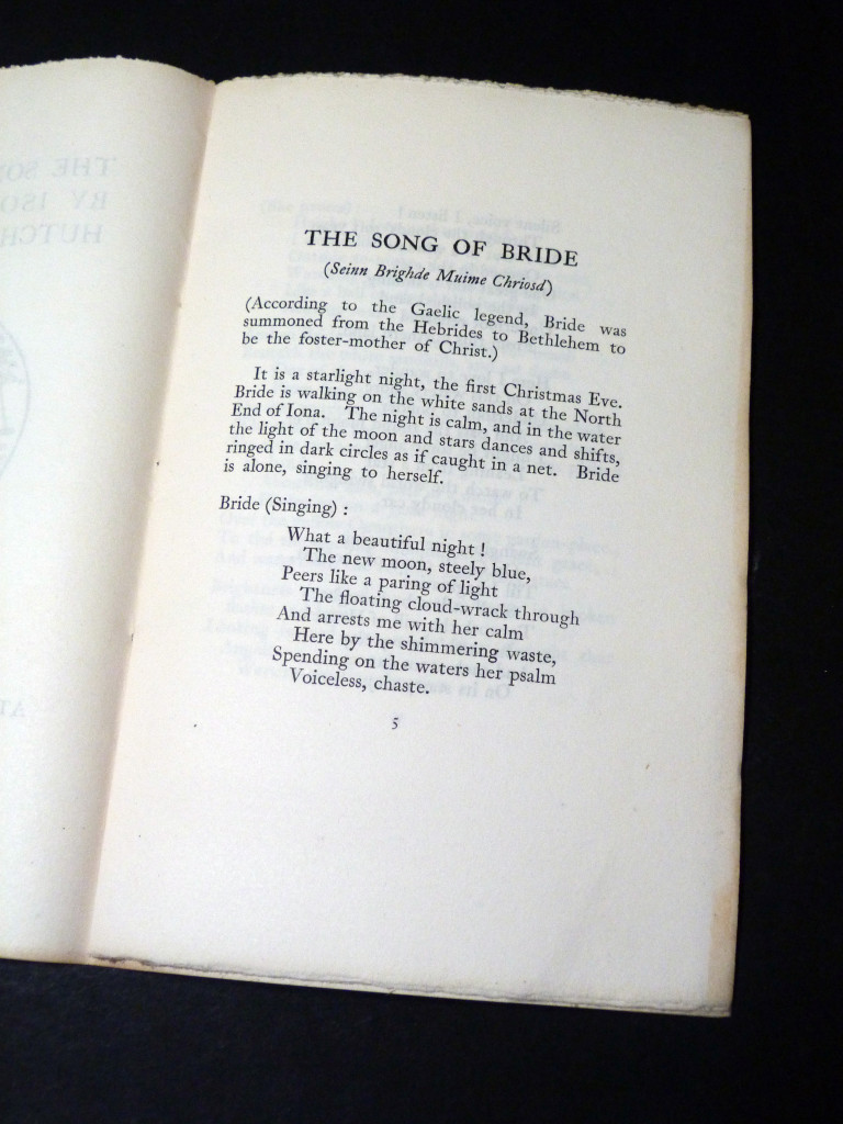 Isobel Wylie Hutchison's poetic retelling of the Gaelic legend of Bride, foster-mother to Christ