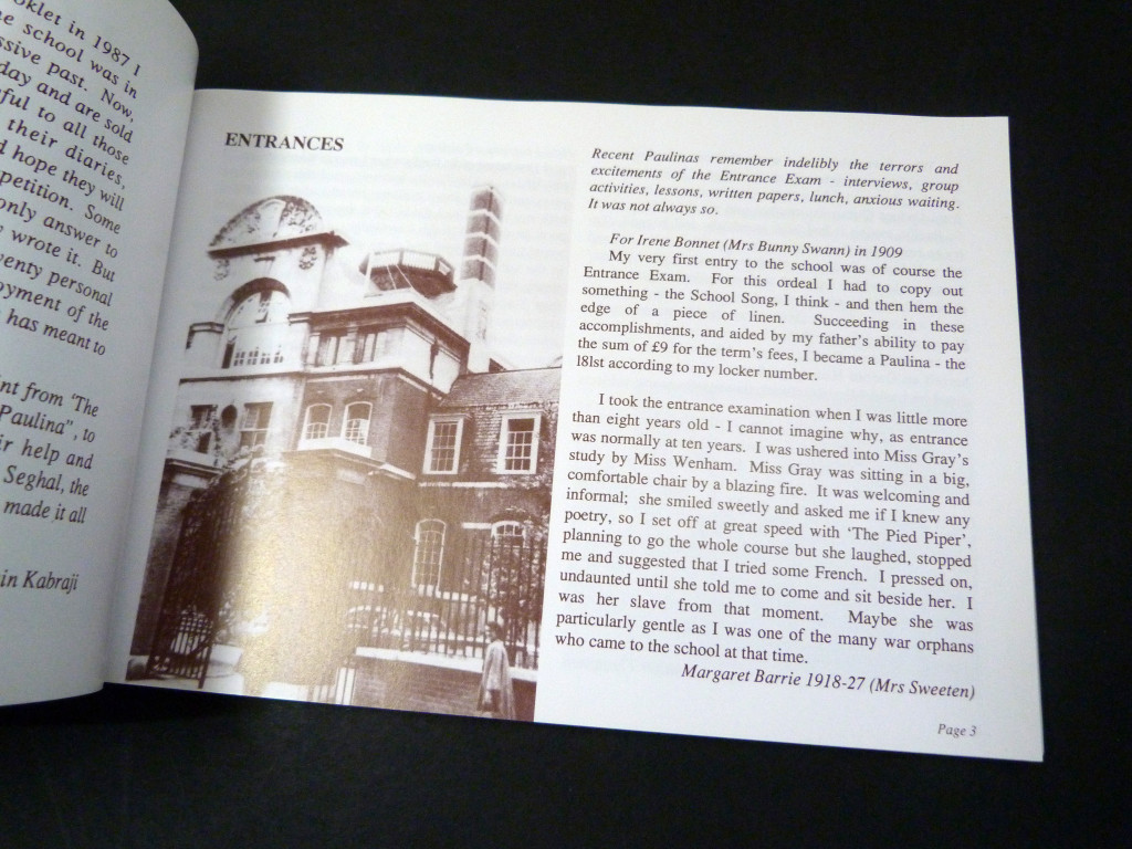 Also included is the updated edition covering 1904 to 1954, again illustrated with photographs etc, and a slim booklet titled "Looking Back, memories of St. Paul's Girls' School for its 90th birthday" edited by Etain Kabraji.