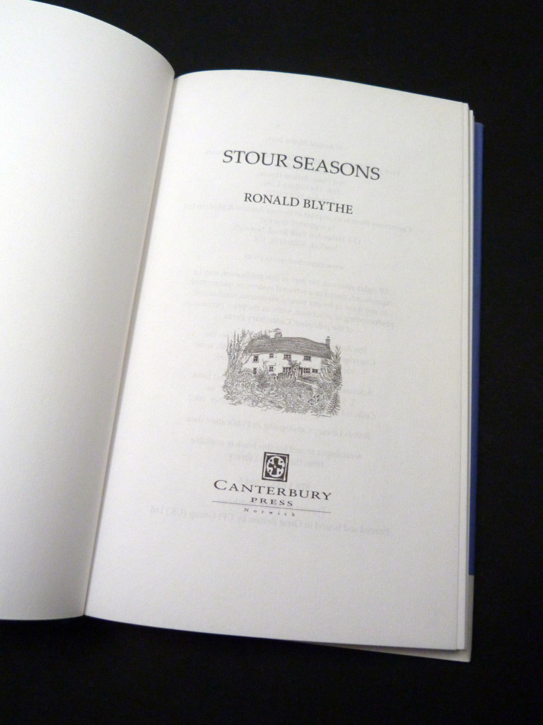 2. Stour Seasons (Canterbury Press, 2016). Very good condition. A Wormingford Book of Days, a collection of Ronald Blythe's column from the Church Times.