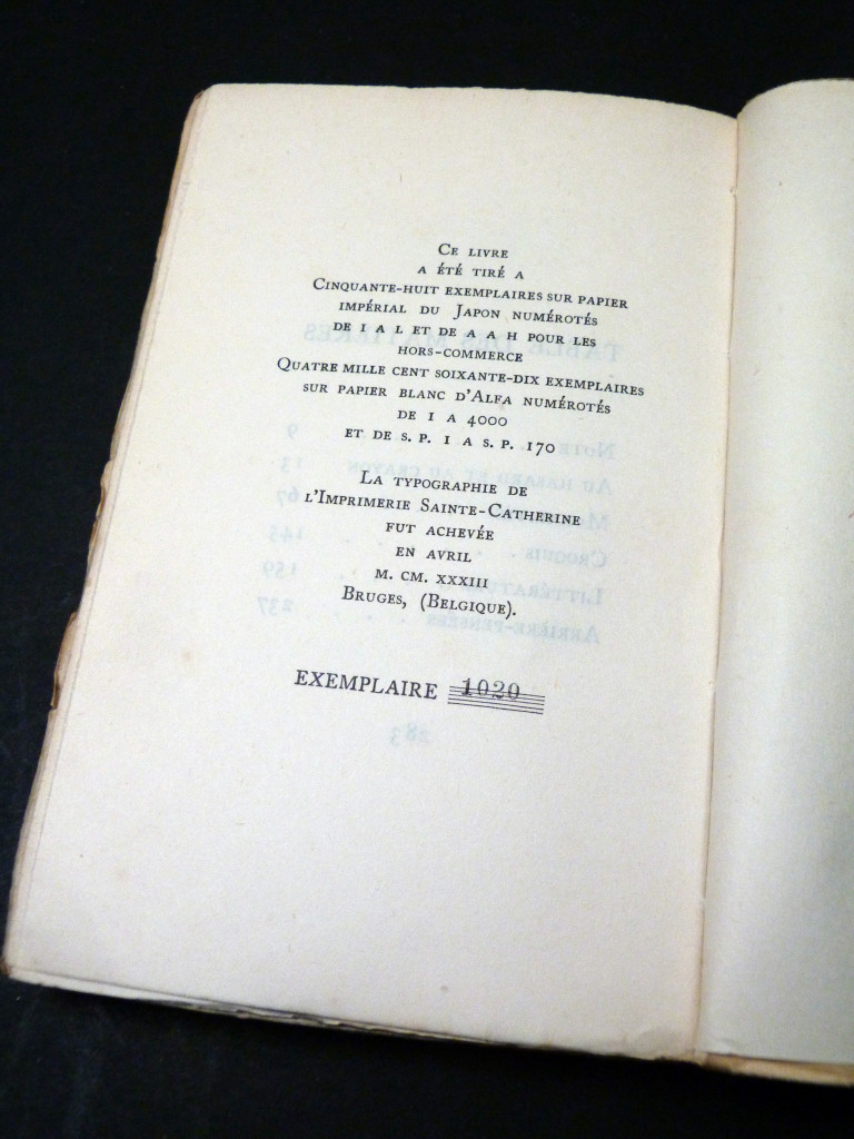 First thus. First Gallimard edition. Paperback in glassine wrapper. One of 4170 copies printed (this being number 1020). 19 × 12cm, 283pp. French text.