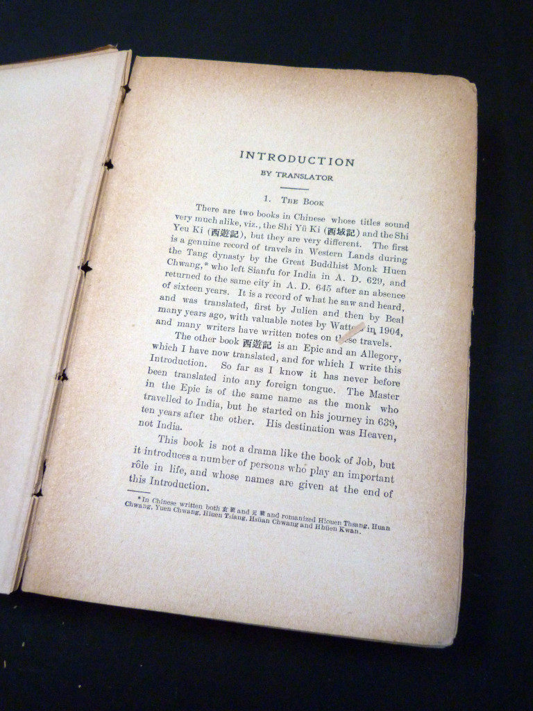 1913, first English edition of the Chinese classic novel A Journey to the West, translated by Timothy Richard