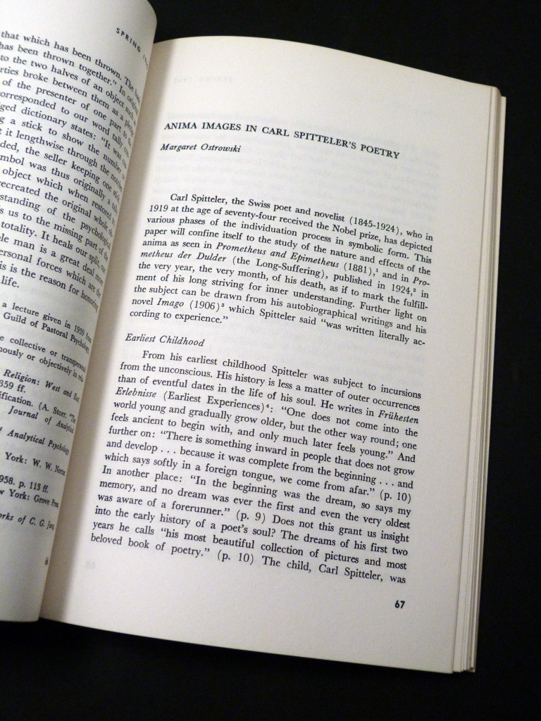 The 1962 issue of Spring, including Hermann Hesse's A Greeting to Dr Jung on his Eightieth Birthday, Edward F Edinger's Symbols: The Meaning of Life; and Kristine Mann's The Shadow of Death, among other pieces.