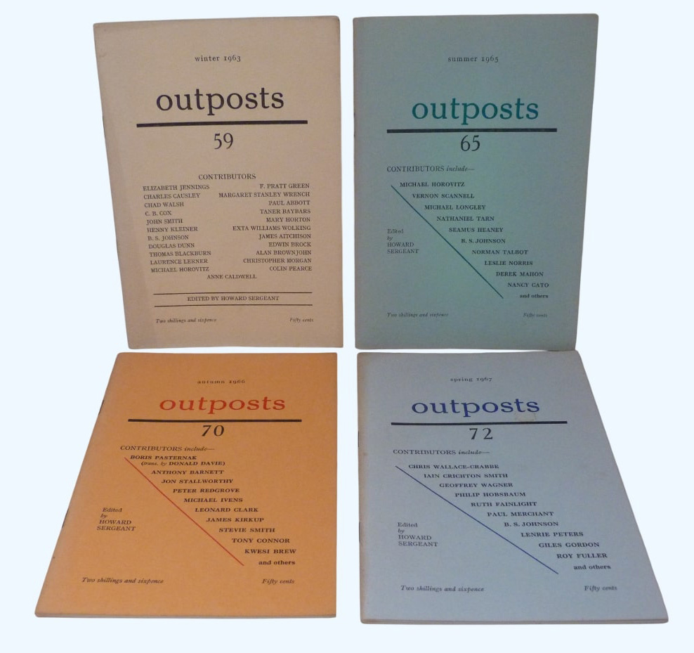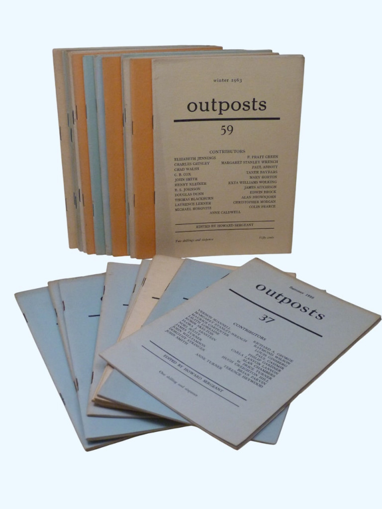 Here are twenty one issues of Outposts, an important (and the oldest) independent poetry periodical published in South London by poet Howard Sergeant. It was first published in 1944 and it's goal was to promote the work of younger poets. In it's early years it championed the young Muriel Spark (Howard Sergeant was a boyfriend at the time).