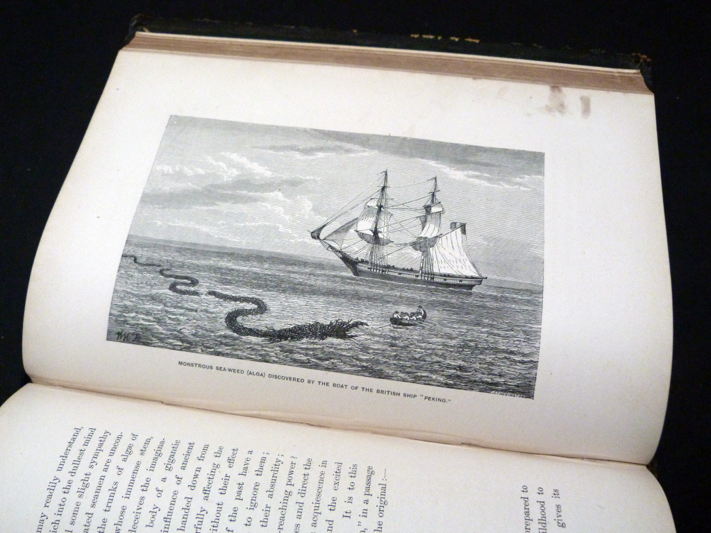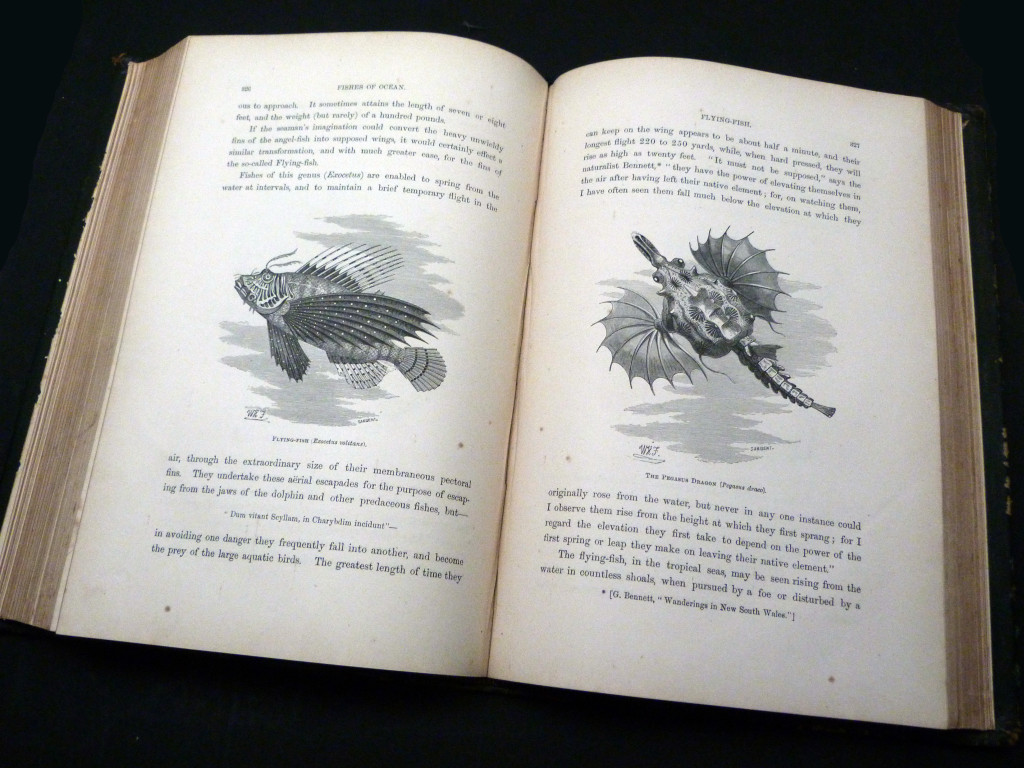 Arthur Mangin's study of the wonders of the ocean, from natural phenomena, the weirdest creatures, marine life, geology, chemistry, mythology etc etc, and illustrated with 130 woodcut engravings showing everything from flying fish and anemones to sea serpents and volcanoes, from crabs and coral to electric storms and the Nile delta.