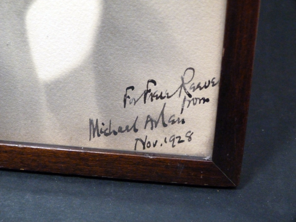 The photograph has been signed and dedicated by Michael Arlen lower right "For Frere Reeves from Michael Arlen, Nov 1928". Frere-Reeves (also known as Alexander Stuart Frere) was a British publisher who was highly influential in the interwar and post-Second World War period. He was chairman of the board of William Heinemann Ltd. Heinemann published Arlen's works.