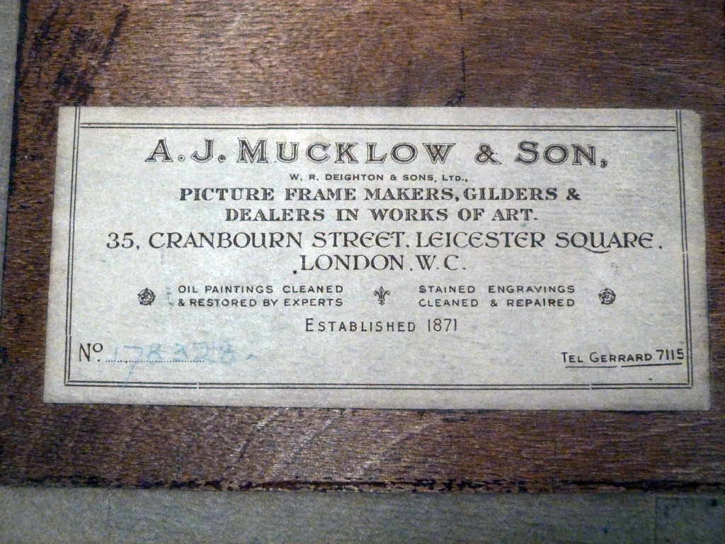 The photograph is in very good condition for age, as is the frame. A label to the reverse shows it was framed by A J Mucklow & Sons of Leicester Square, London.