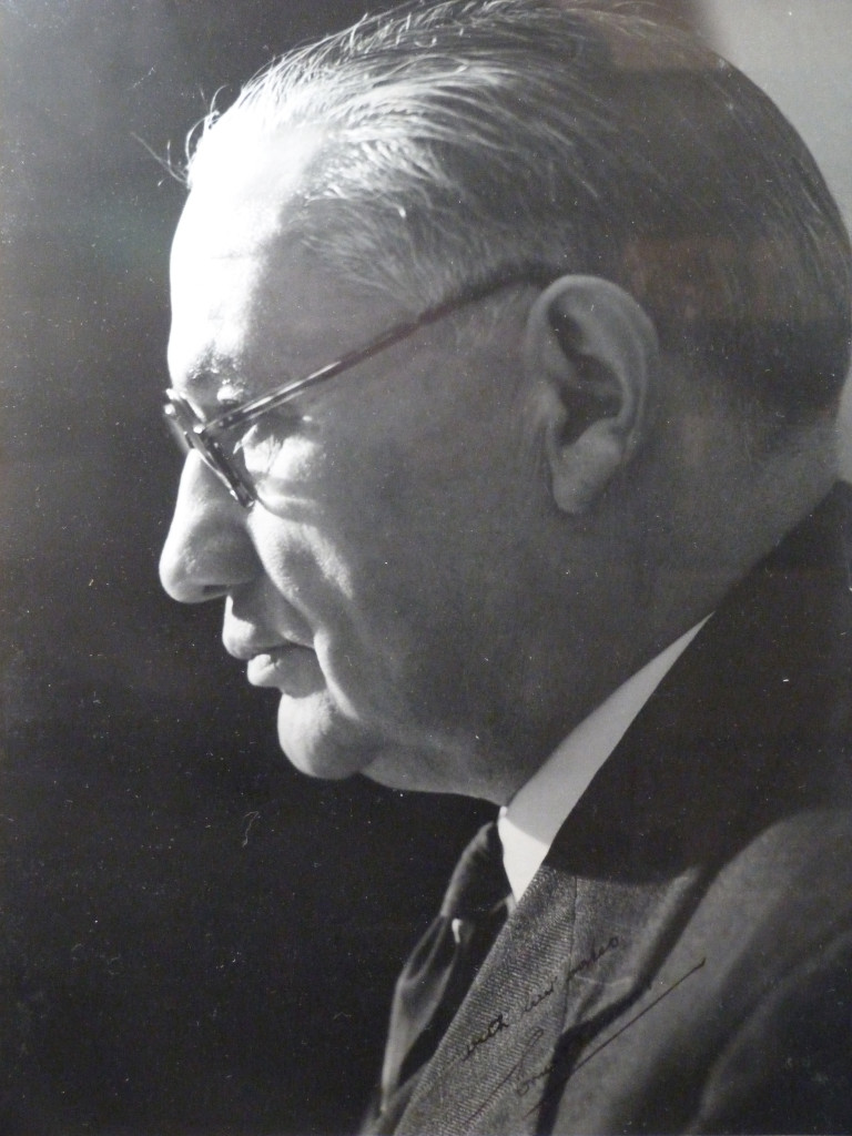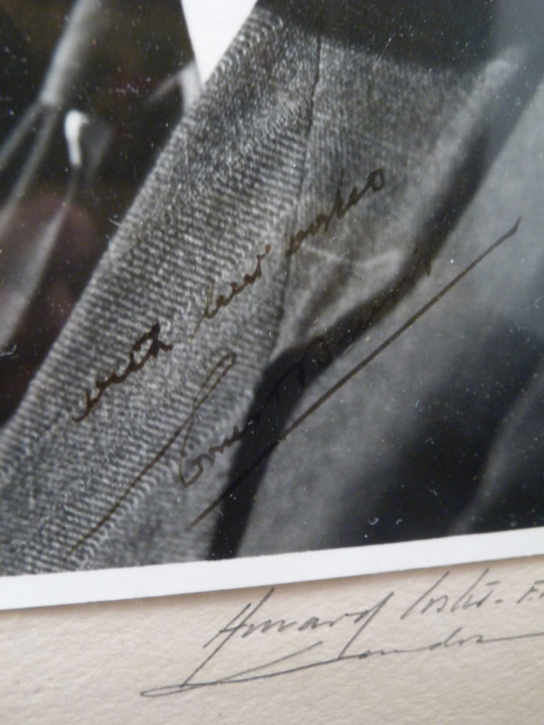 The photograph has been signed by Ernest Bevin in black ink (just over his lapel), and also by Howard Coster.