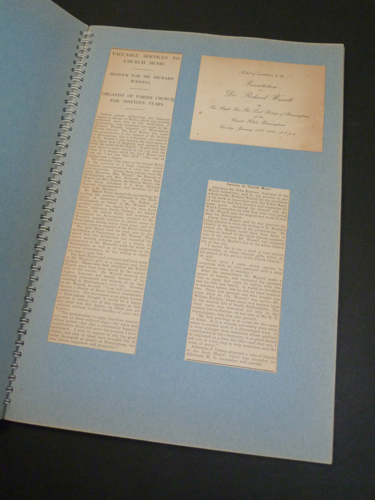 Dr. Richard Wassell, Birmingham musician, signed music & scrapbook